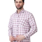 This mauve and white checkered shirt offers a clean, contemporary look that is perfect for professional or smart-casual occasions. The Poly Laffer fabric provides a crisp, structured fit that maintains its appearance and resists wrinkles throughout the day.