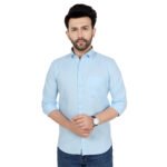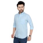 Upgrade your everyday style with this premium sky blue cotton shirt featuring a subtle matty texture. The soft pastel blue shade gives a fresh and clean look, making it ideal for casual outings, office wear, and smart-casual occasions. Made from breathable cotton fabric, it offers all-day comfort with a sharp and modern fit.