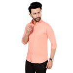 Add a fresh and trendy touch to your wardrobe with this stylish peach cotton shirt. Designed with a subtle matty texture, it offers a premium feel and a modern look. The soft peach tone is perfect for casual outings, summer wear, and smart-casual occasions. Crafted from breathable cotton fabric, it ensures all-day comfort with a clean and sharp fit.