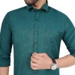 Add a touch of elegance to your wardrobe with this dark green cotton shirt. Featuring a premium matty textured finish, this shirt offers a rich and sophisticated look. The deep green shade makes it perfect for both casual and semi-formal wear. Crafted with breathable cotton fabric, it ensures all-day comfort while maintaining a sharp and stylish appearance.