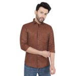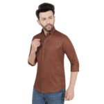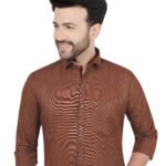 Upgrade your wardrobe with this classy coffee brown cotton shirt featuring a premium matty textured finish. The rich earthy tone gives a sophisticated and versatile look, perfect for both casual and semi-formal occasions. Designed with breathable fabric and a modern fit, it ensures comfort along with a sharp appearance.