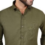 Add a classy and sophisticated touch to your wardrobe with this olive green cotton shirt. Featuring a premium matty textured finish, this shirt offers a subtle yet rich look that works perfectly for both formal and smart-casual occasions. The earthy olive tone gives a modern, stylish edge while keeping the outfit elegant and versatile.