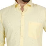 Premium pastel yellow cotton shirt with subtle matty texture jo ek fresh aur vibrant look deta hai. Ye shirt casual outings, summer wear aur smart casual styling ke liye perfect hai. Soft aur breathable fabric all-day comfort ensure karta hai.