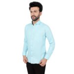 Premium aqua blue cotton shirt with subtle matty texture finish jo ek clean aur modern look deta hai. Iska plain design minimalist styling ke liye perfect hai—office wear, casual outings aur daily use ke liye ideal. Soft cotton fabric breathable hai aur all-day comfort provide karta hai.