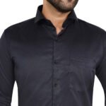 Step into effortless style with this midnight blue cotton satin shirt, crafted for a sleek and modern look. The deep blue tone with a subtle shine gives a rich, classy appeal—perfect for evening wear, office, or special occasions.