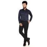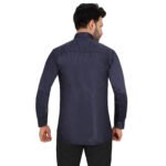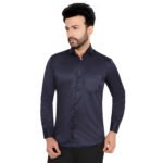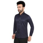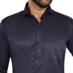 Add a touch of elegance to your wardrobe with this premium navy blue cotton satin shirt. Its rich color and smooth satin finish give a classy, polished look—perfect for both formal occasions and evening outings.