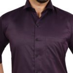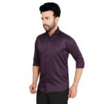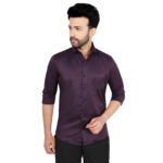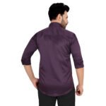 Add a touch of luxury to your wardrobe with this rich wine-colored cotton satin shirt, crafted for a bold and classy appearance. Its smooth finish and deep tone make it perfect for evening wear and special occasions.
