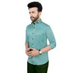 Upgrade your wardrobe with this stylish teal green cotton satin shirt. Designed with a minimal and elegant look, this shirt offers a perfect balance of comfort and style. The smooth satin finish gives a subtle shine and a premium feel, while the rich teal shade adds a bold and modern touch. Perfect for office wear, casual outings, and smart occasions.