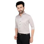 Upgrade your wardrobe with this elegant light grey cotton satin shirt. Designed with a minimal and sophisticated look, this shirt offers a perfect balance of comfort and style. The smooth satin finish gives a subtle shine and a premium feel, while the light grey shade adds a classy and versatile touch. Perfect for office wear, formal meetings, and smart casual occasions.