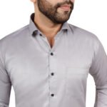 Enhance your style with this elegant silver grey cotton satin shirt. Crafted for a refined and polished look, this shirt features a smooth satin finish that adds a subtle shine. The light grey tone gives a classy and versatile appeal, making it perfect for office wear, meetings, and special occasions.