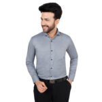 Step into effortless elegance with this steel grey cotton satin shirt, crafted for a modern and refined look. The smooth satin finish gives a subtle shine, while the neutral grey tone makes it extremely versatile—perfect for office wear, formal meetings, and smart evening outings.