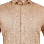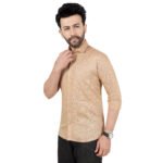 Premium cotton stripe lining shirt in elegant beige shade. Subtle woven stripe texture gives a rich and classy look, perfect for both casual and semi-formal wear. Lightweight, breathable, and comfortable for all-day use.