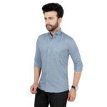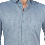 Premium sky blue cotton shirt with subtle stripe lining texture, designed for a clean and classy look. Perfect for office wear, casual outings, and all-day comfort. Lightweight fabric with a smooth finish gives a modern appearance.