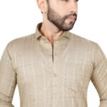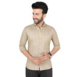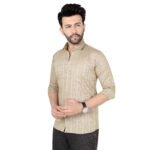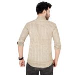 Elegant beige cotton shirt with subtle vertical stripe texture, designed for a classy and premium look. Neutral color hone ki wajah se ye shirt casual aur semi-formal dono styling ke liye perfect hai. Soft cotton fabric all-day comfort deta hai.