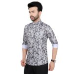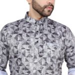 Home Shop Short Kurta Men’s Grey Geometric Print Short Kurta