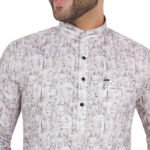 Upgrade your ethnic wardrobe with this beige abstract textured short kurta. Featuring a subtle mix of soft beige, off-white, and earthy tones in a modern abstract pattern, this kurta offers a classy and minimal look. Ideal for daily wear, festive occasions, or smart casual styling.