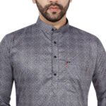 Upgrade your ethnic style with this elegant grey diamond printed short kurta. Featuring a classic geometric pattern in subtle grey tones, this kurta gives a sophisticated and premium look. Ideal for both casual outings and festive occasions, it combines comfort with modern design.