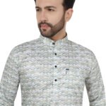 Enhance your wardrobe with this stylish men’s short kurta featuring a subtle and elegant geometric print. Crafted for comfort and modern appeal, this kurta comes with a mandarin collar and full sleeves, making it perfect for both casual and semi-festive occasions. Pair it with jeans or chinos for a smart and effortless look.