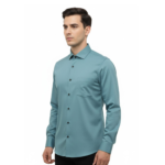 Men’s Teal Blue Satin Full Sleeve Shirt