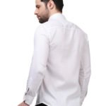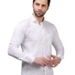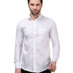 Elevate your formal wardrobe with this sophisticated white textured shirt. Crafted from premium Cotton Satin fabric, it offers a luxurious, silky-smooth feel combined with the natural breathability of cotton. The subtle self-textured pattern adds a modern, designer touch to the classic white shirt, making it ideal for weddings, celebrations, or executive meetings.
